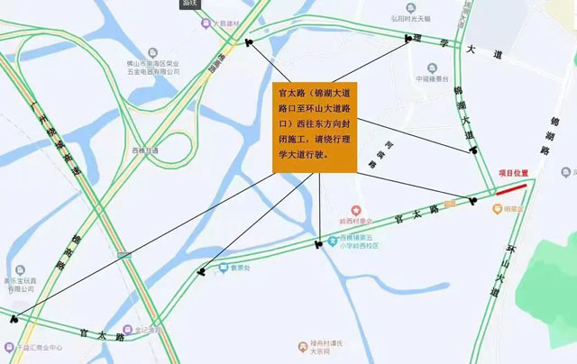 (1)从官太路往环山大道方向的车辆,可以绕行樵高路和锦湖大道和理学大道