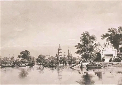 五代时期, 南汉国的国主在此修造花坞。清代中后期,这一带更是“红云十里、八桥画舫”,名园荟萃,遂成胜景。