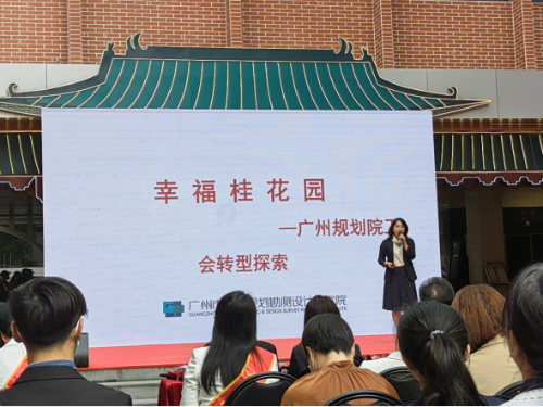 三八妇女节当天,作为广州市十佳女职工首席关爱官,规划院工会主席马云受邀出席市总工会举办的2023年庆祝三八国际劳动妇女节活动展演暨十佳女职工首席关爱官案例颁奖典礼,现场独家进行《幸福桂花园—广州市规划院工会转型新探索》的案例推广,广州市总工会唐航浩主席当场高度肯定了局属规划院工会的工作,演讲获得在场工会同行们的一致好评。