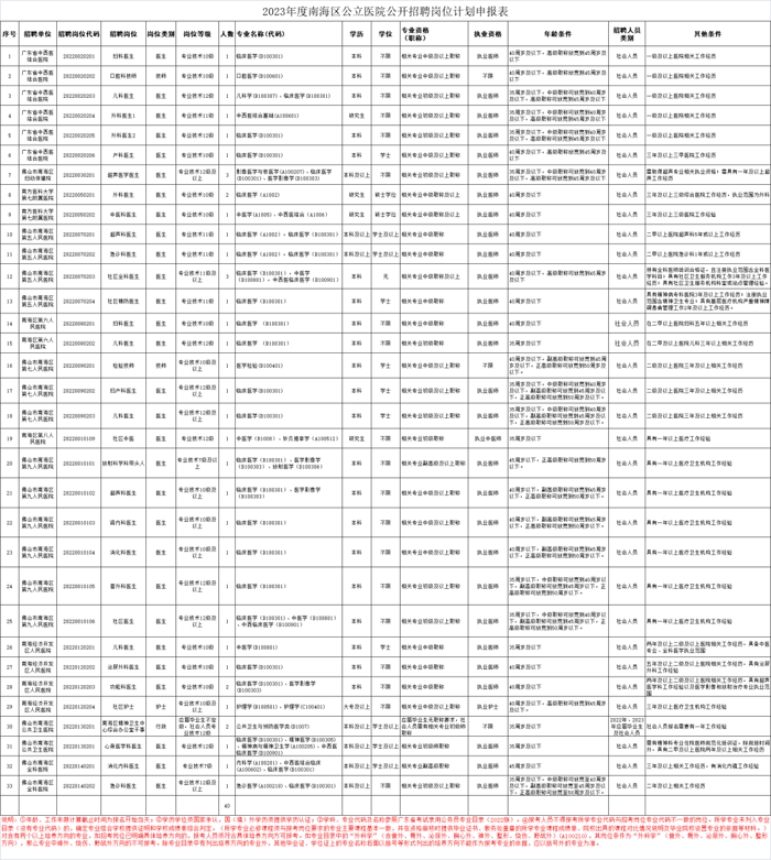 佛山市南海区下辖的11家公立医院,因工作需要,公开招聘事业单位聘用制工作人员40名。现依照《广东省事业单位公开招聘人员办法》(广东省人民政府令第139号)制定招聘方案并公告如下:
