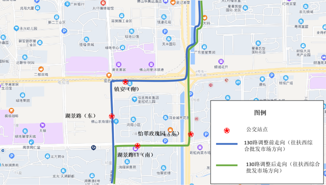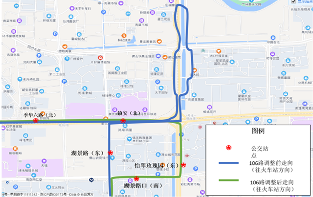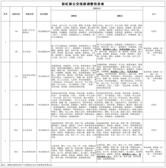 根据市民建议,结合彩虹路与南海大道实际通行情况,经研究,拟在彩虹路(湖景路与南海大道路段)增设湖景路口(南)站点,同时拟将106路(新三中公交枢纽站往火车站方向)、130路(金域蓝湾南往扶西综合批发市场方向)、桂05路(江南名居往金地珑悦花园方向)调整至彩虹路行驶并停靠湖景路口(南)站。现公开征求社会意见,公众可于2022年4月5日前,通过“佛山交通”或“佛山公交”微信公众号中“互动交流”-“意见反馈”板块反馈相关意见。