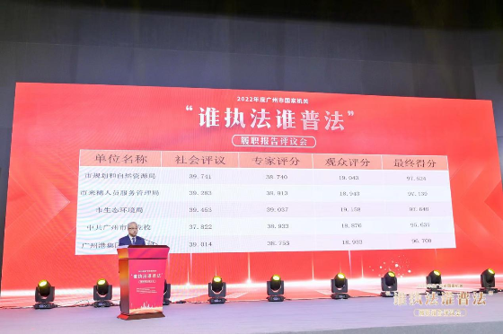 3月14日上午,2022年度广州市国家机关“谁执法谁普法”履职报告评议会在广州越秀国际会议中心举行,市生态环境局等5个市直单位作为评议对象参加会议。广州市生态环境局党组书记、局长杨柳同志代表市生态环境局在大会上作“谁执法谁普法”履职报告。经评议团评委和参会人员现场评分,并综合社会评议投票得分,市生态环境局最终以综合评分第一的好成绩荣获广州市国家机关“谁执法谁普法”履职报告评议优秀单位。