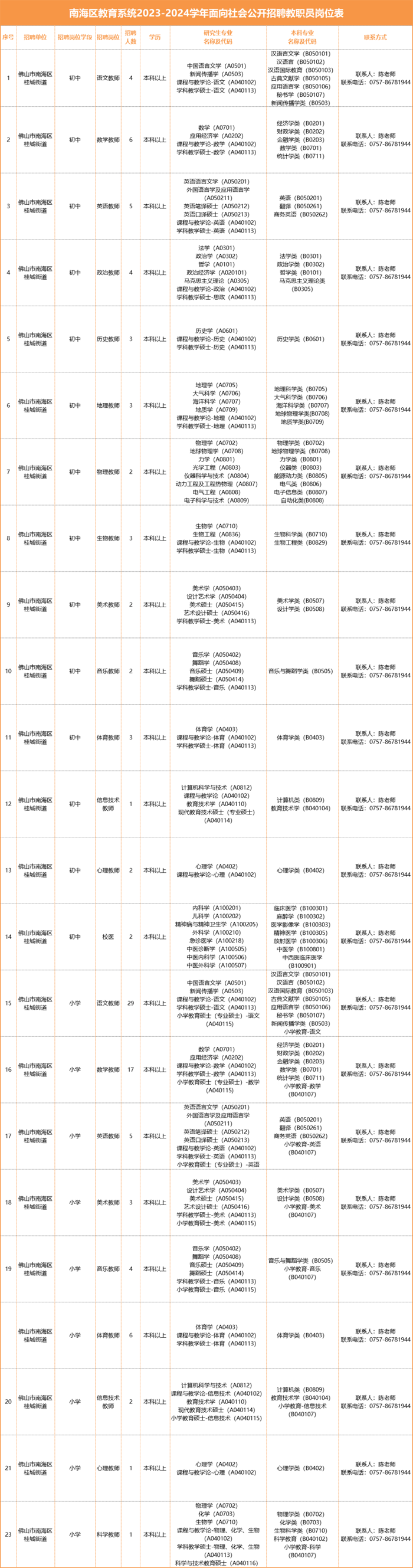 南海区教育系统面向社会公开招聘教职员(桂城街道110名)