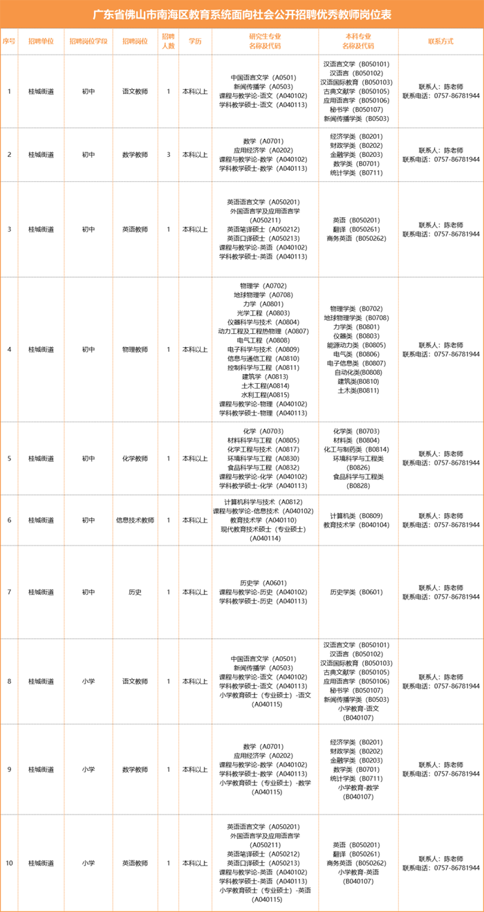 南海区教育系统面向社会公开招聘优秀教师(桂城街道12名)