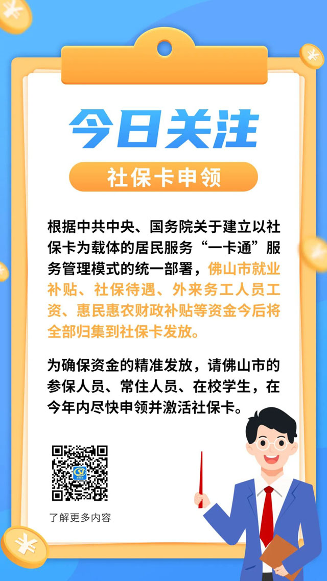 申请人只需登录“佛山社保卡”微信小程序即可线上申领社保卡。未成年人可由监护人通过“佛山社保卡”微信小程序“社保卡代办”功能申领社保卡。
