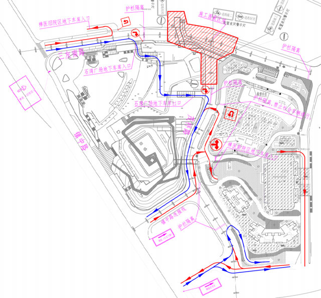 2、去往禅医旧院区(只上落,不停放):车辆可从镇中路(单行)进入三友南路(临时上落),经石湾广场地下停车场入口处往出口处沿茂祥路(双行)往南驶出。