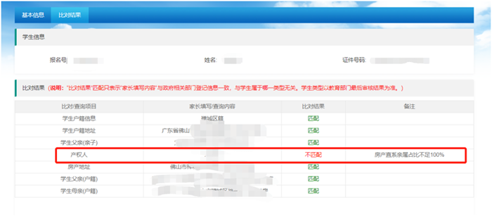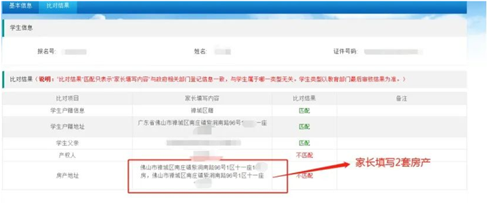 01、情形:家长填报房产地址信息有误,造成比对结果不匹配。