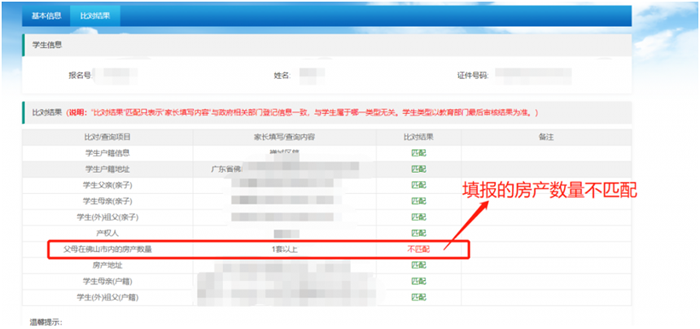 建议:1.如果父母在佛山市内的房产数量不匹配,请核实是否填报正确。如果需要修改请在报名结束前(3月20日17:00)登录“佛山市禅城区招生系统”对不匹配项目进行修改。