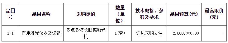 多点多波长眼底激光机招标项目的潜在投标人应在广东省政府采购网https://gdgpo.czt.gd.gov.cn/获取招标文件,并于 2023年04月07日 09时30分 (北京时间)前递交投标文件。