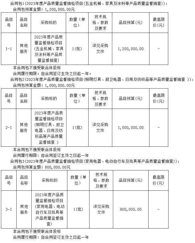 2023年度产品质量监督抽检招标项目的潜在投标人应在广东省政府采购网https://gdgpo.czt.gd.gov.cn/获取招标文件,并于 2023年04月07日 09时00分 (北京时间)前递交投标文件。