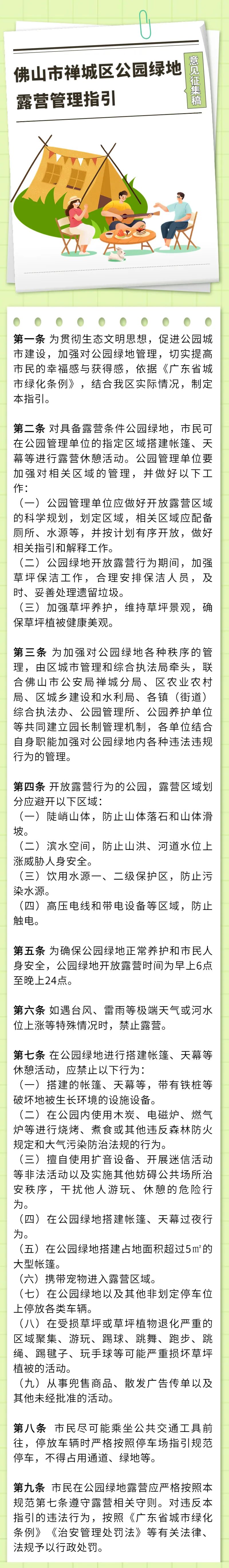 佛山市禅城区公园绿地露营管理指引!征求意见稿!