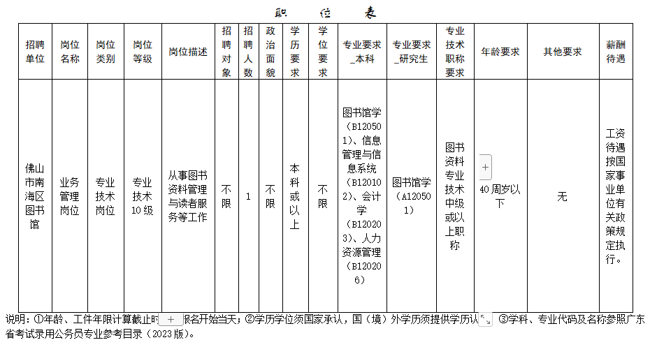 根据工作需要,佛山市南海区图书馆招聘公益一类事业单位编制工作人员1名,现公告如下: