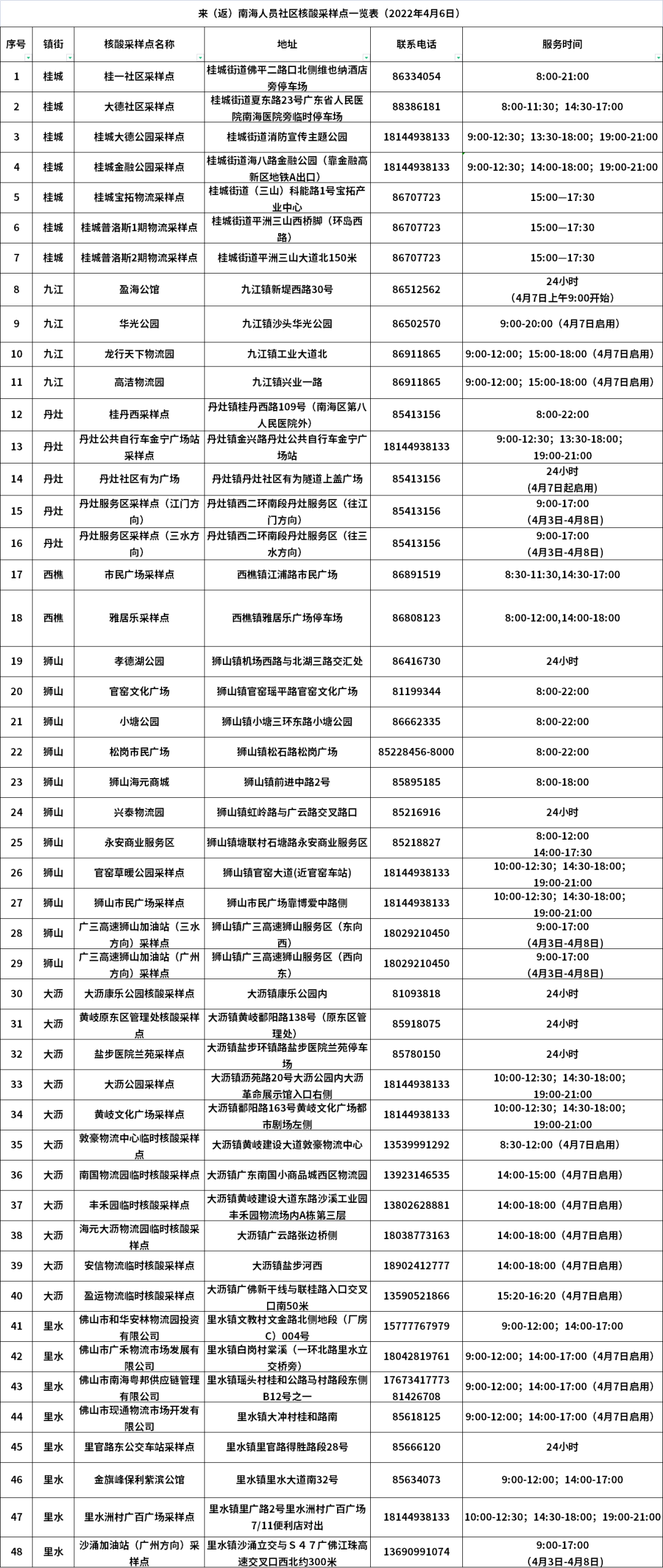 > 佛山南海最新48个核酸采样点公布,区内医院已暂停该服务