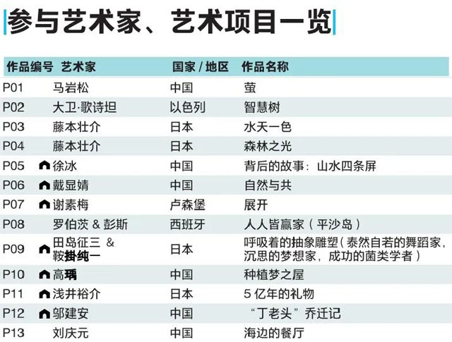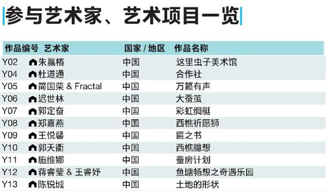 注:Y04-Y13 十个小木屋艺术项目仅供室外参观。
