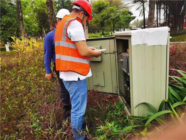 三水区交通运输局工作人员对南丰大道信号灯绿波带进行调试。