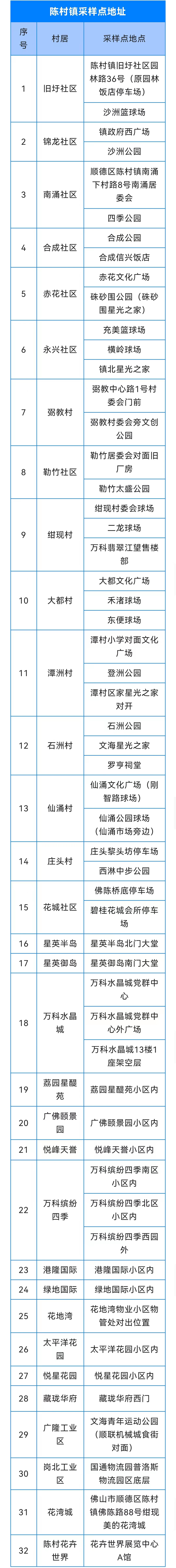 佛山顺德区陈村镇关于开展免费核酸检测服务的通知
