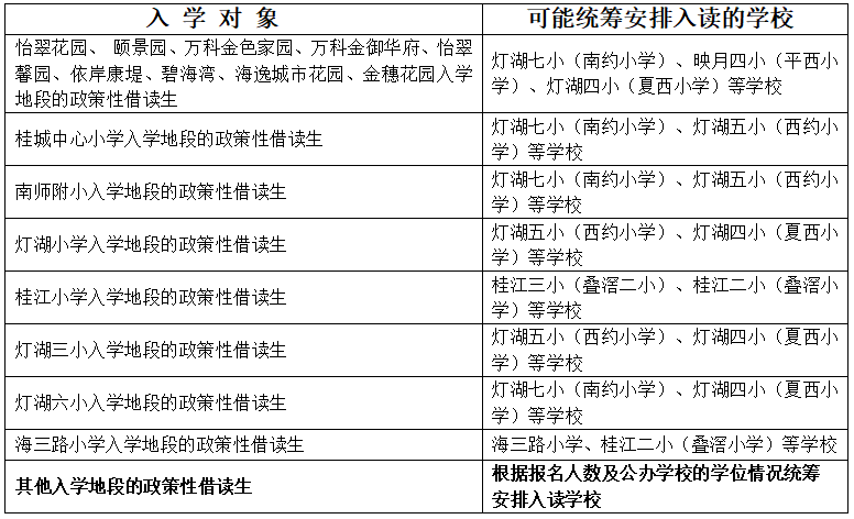 一、在满足桂城街道各入学地段内户籍人口子女入学基础上,街道教育行政部门和中小学校根据公办学校学位情况,按照先政策性借读生,后普通借读生的原则,安排招收非户籍常住人口子女入读公办学校。