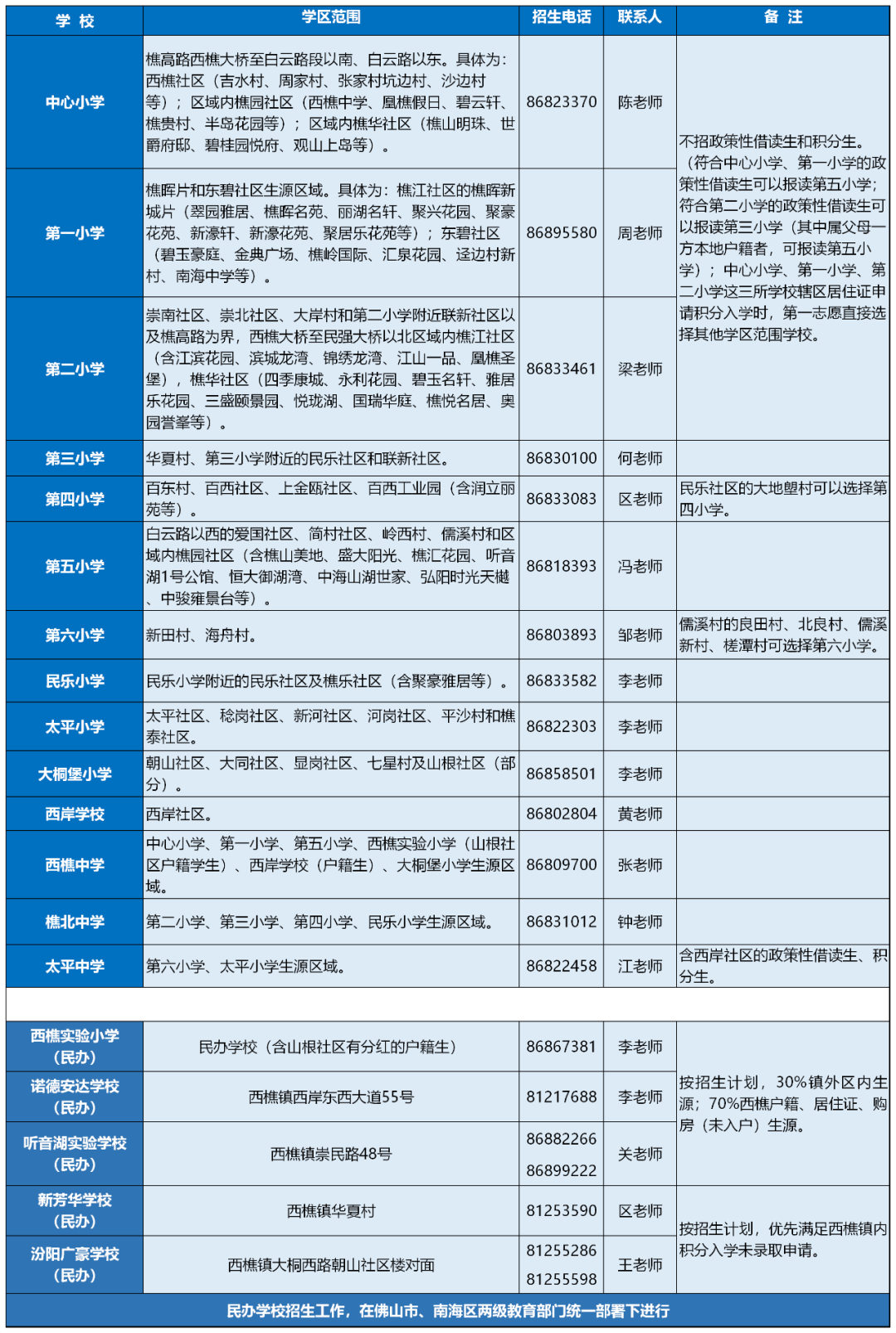 佛山南海区西樵镇2022年公办中小学招生工作方案公布