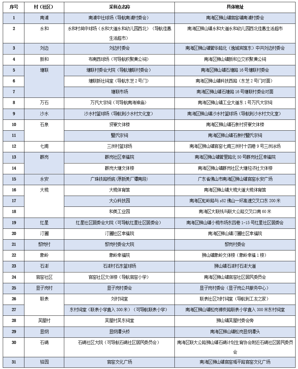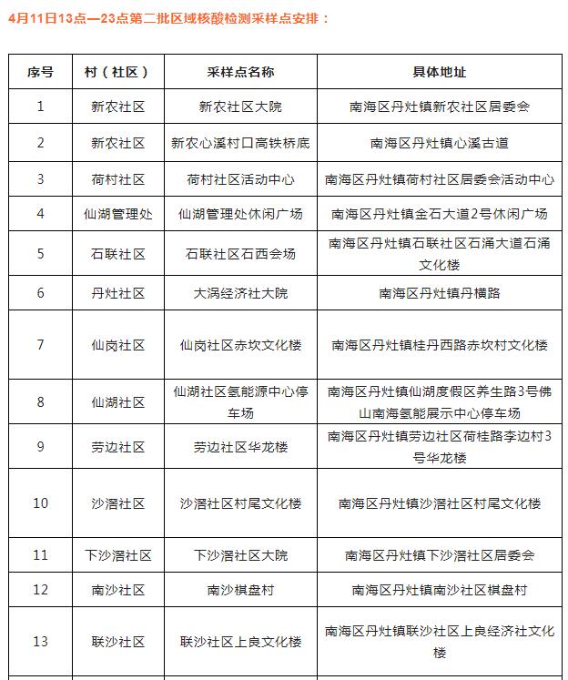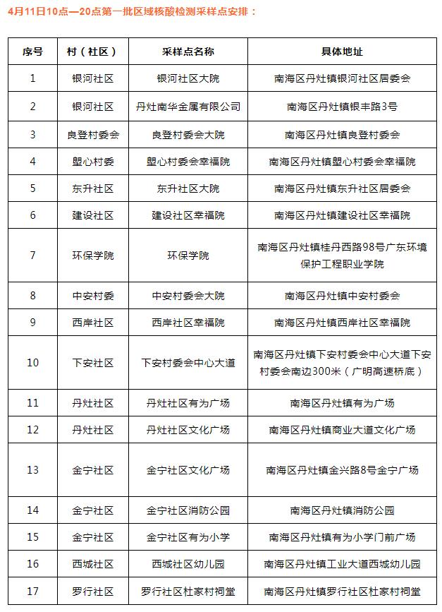 南海区丹灶全镇4月11日开展区域核酸检测(检测采样点)
