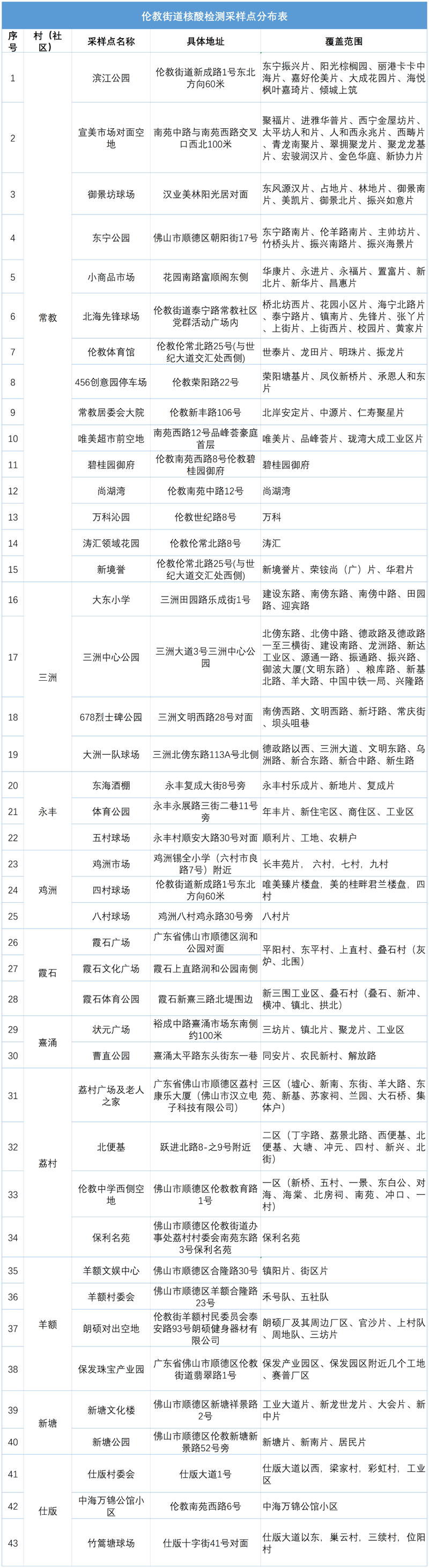 顺德区伦教街道关于启动区域核酸检测的通告(检测采样点)