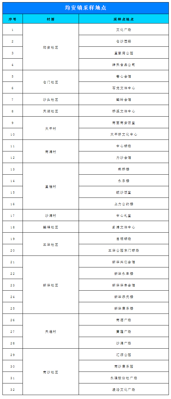 三、全镇分区域设置32个免费核酸采样点,具体地点详见附件。
