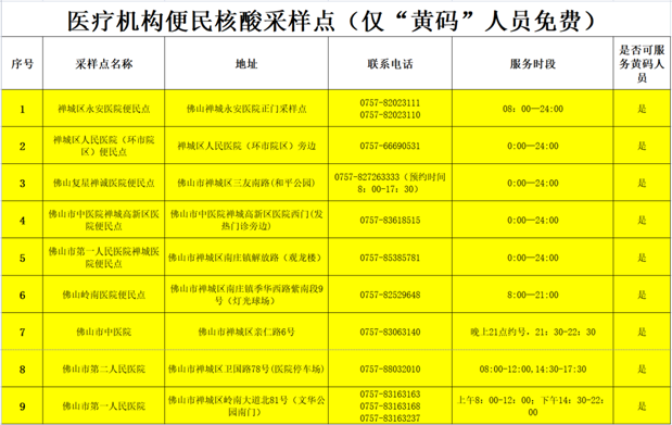 2.以下医疗机构,在相应的时间段可持“黄码”人员提供检测