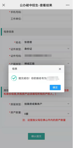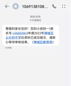 随后,注册的家长手机号会收到由“禅城政务”发出的报名确认短信。