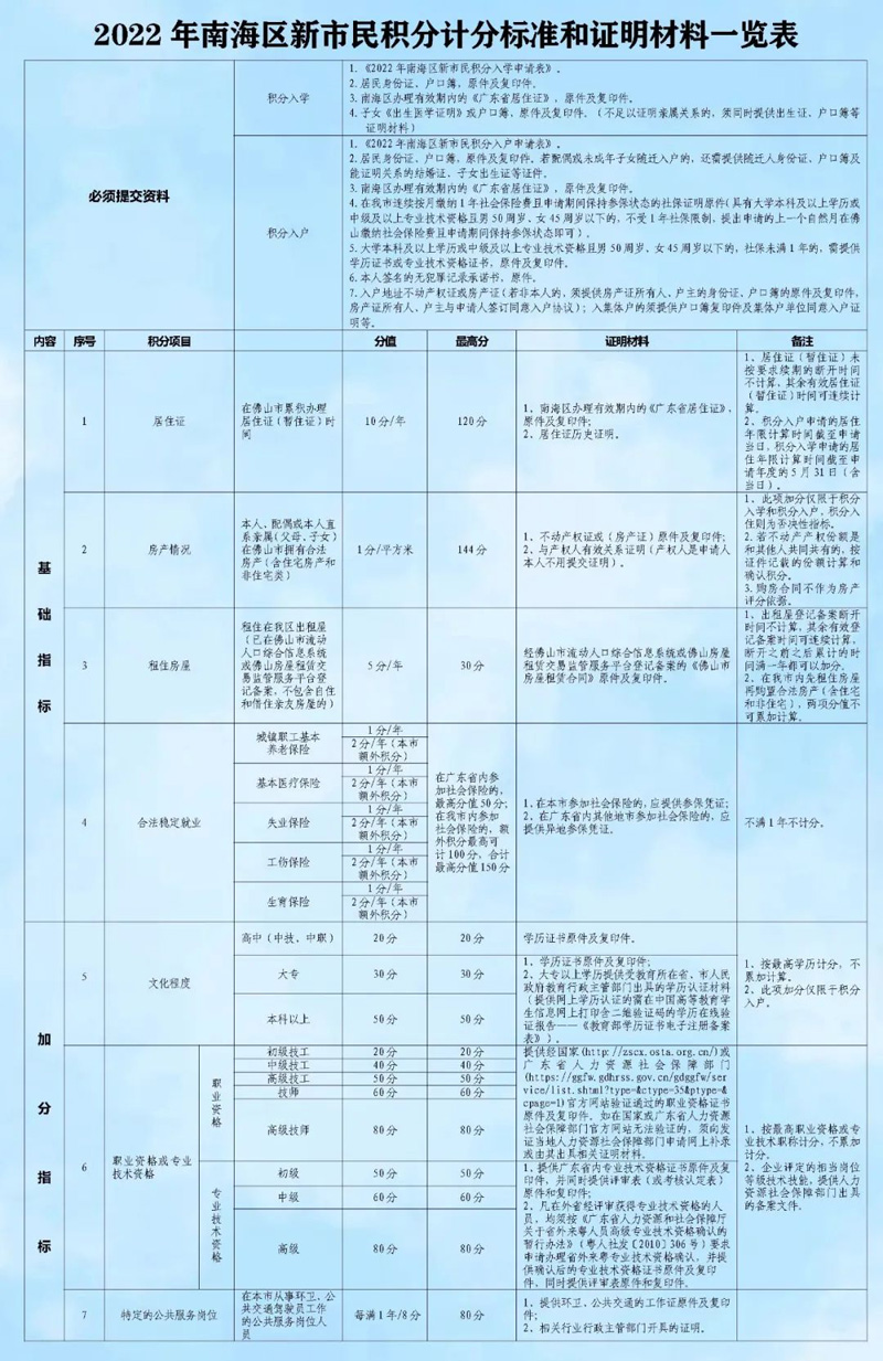 02今年南海区新市民积分计分标准是怎样的?需要什么证明材料?