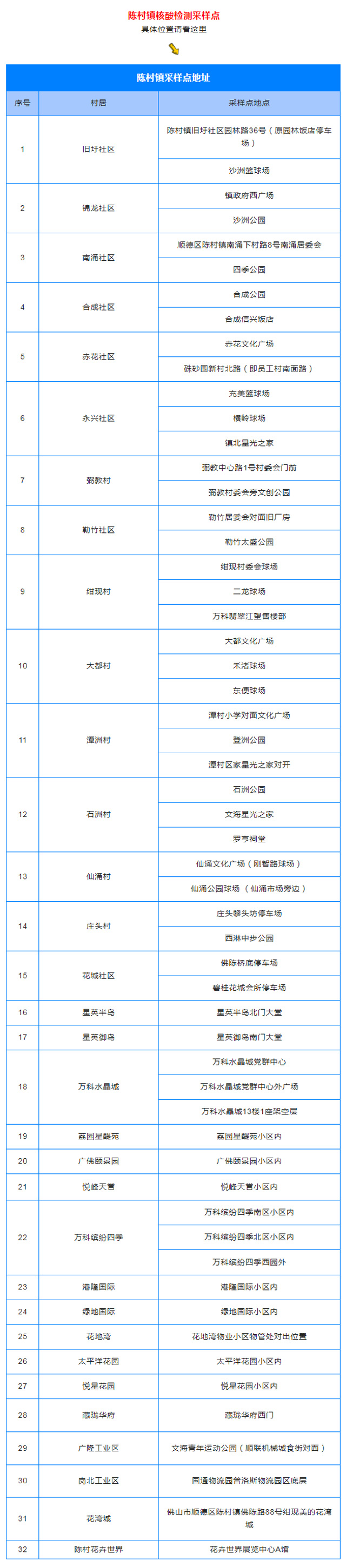 顺德陈村镇关于启动区域核酸检测的通告(核酸采样点)
