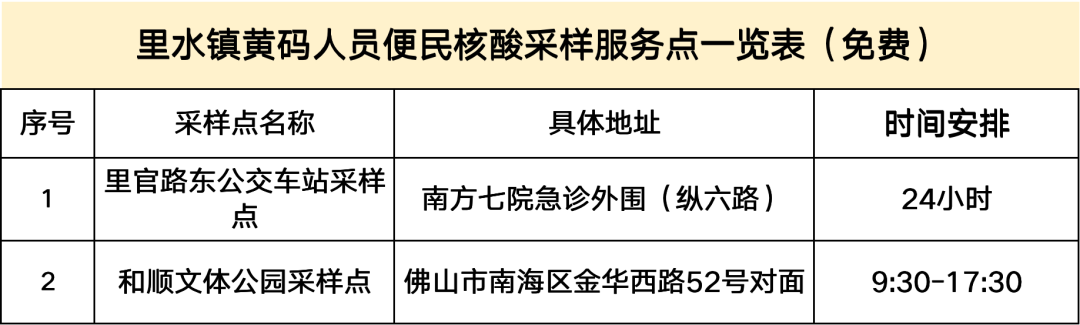 里水君为大家附上里水镇常态化开放核酸采样点: