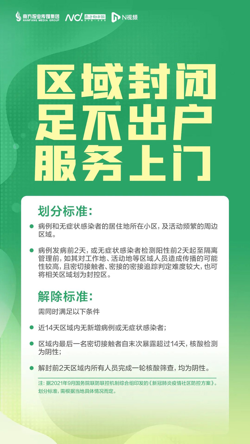 一、封控区,实行“区域封闭、足不出户、服务上门”的管理措施: