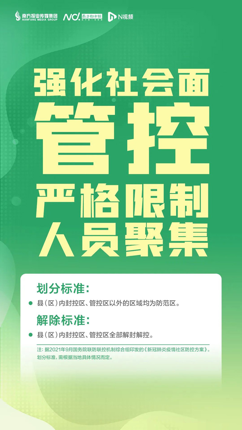 三、防范区,实行“强化社会面管控、严格限制人员聚集,人员非必要不离开”的管理措施: