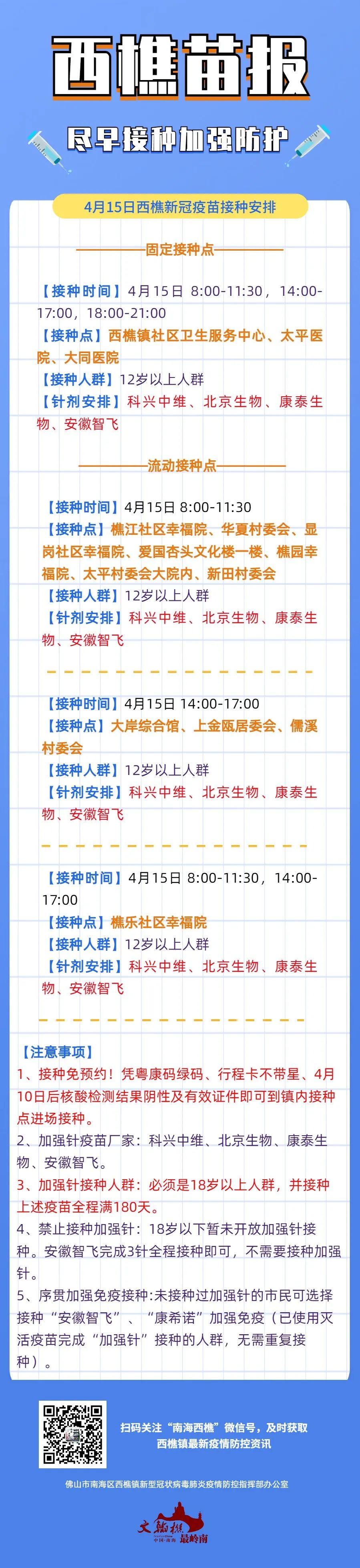 概述:西樵开放14个新冠疫苗接种点,接种免预约!尽快接种疫苗,尽早加强防护,注意:接种新冠疫苗48小时内请勿进行核酸检测......