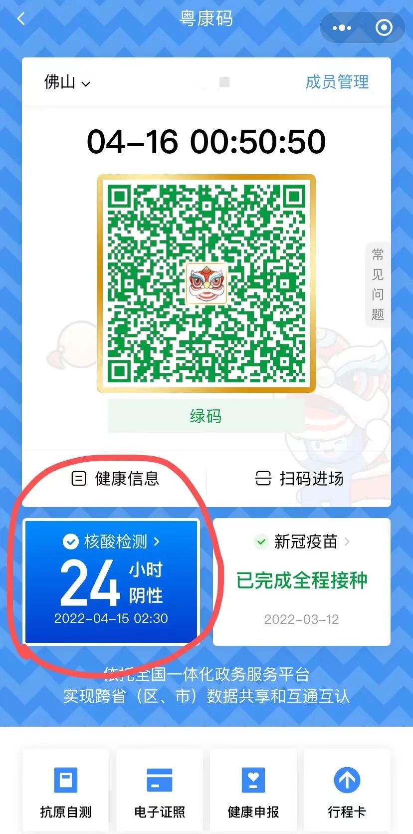 健康码和行程卡示例如下