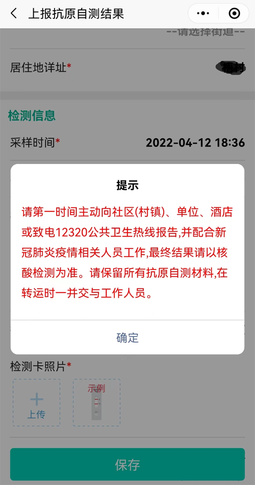 若为阳性,请按照提示指引,及时报告相应单位或机构,保存好自测材料,上传检测卡照片。阴性或无效结果无需上传照片;