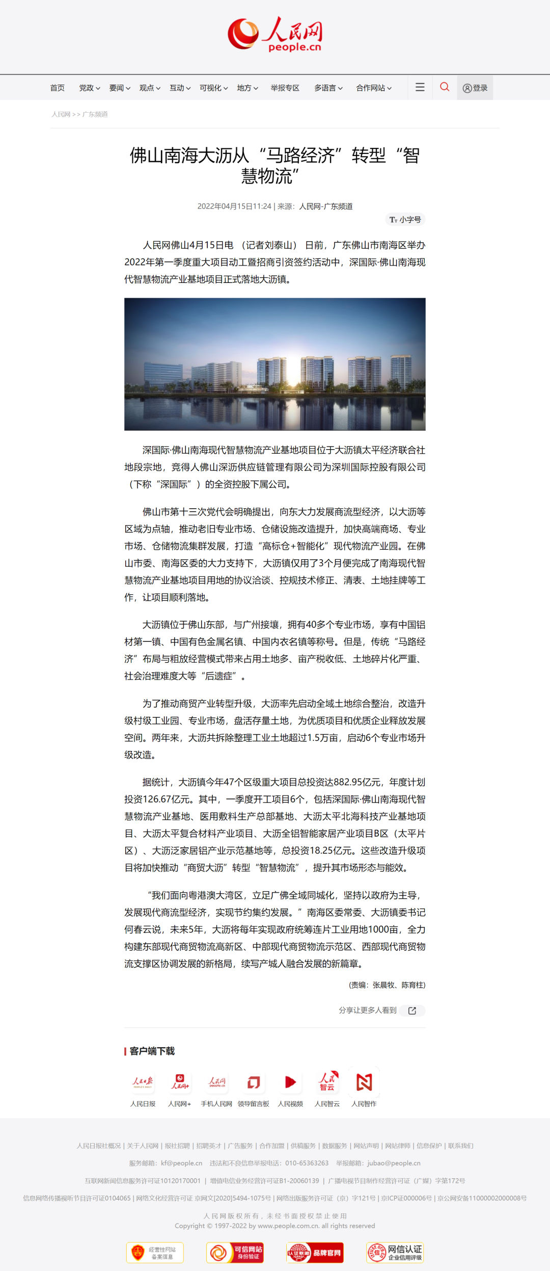 深国际·佛山南海现代智慧物流产业基地项目位于大沥镇太平经济联合社地段宗地,竞得人佛山深沥供应链管理有限公司为深圳国际控股有限公司(下称“深国际”)的全资控股下属公司。