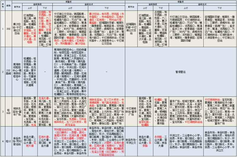 二、232高峰线、恒大御景半岛接驳3线暂停运营。详见附表。