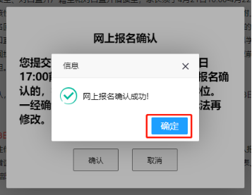 第二步:弹出“网上报名确认”提示框→点击“确认”;