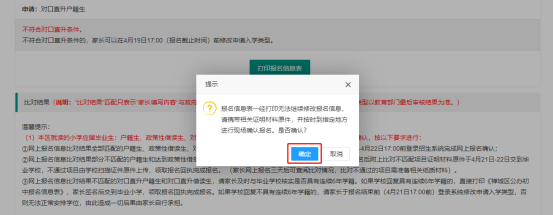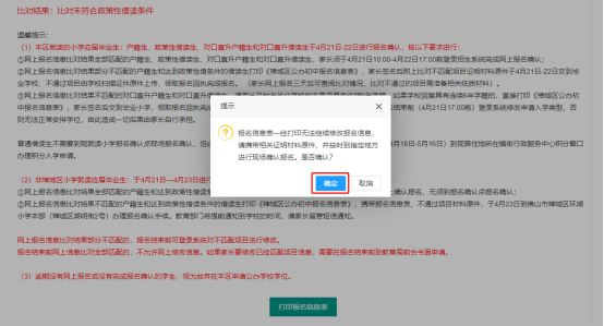 ①“网上报名确认”及“打印报名信息表”按钮在4月21日10:00开放给家长。