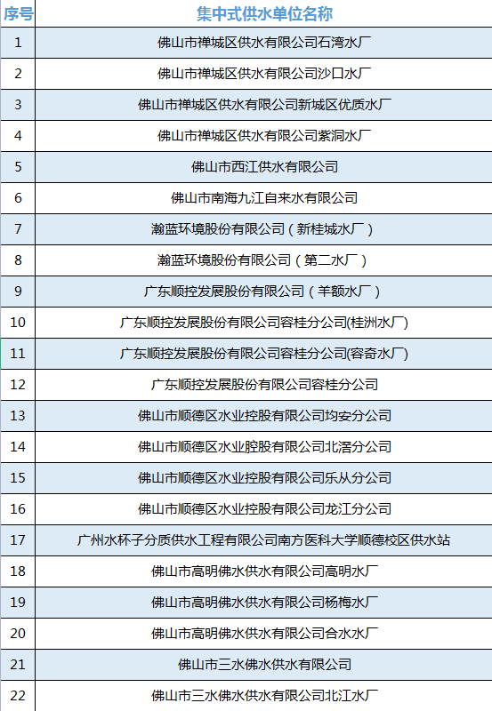 根据《关于推行集中式供水单位卫生监督量化分级管理制度的通知》(佛卫〔2006〕10号)的规定,下列集中式供水单位被评定为2021年度佛山市集中式供水单位卫生等级A级单位。