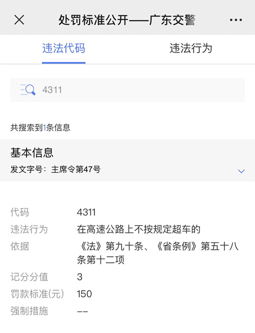 一组数字对应一种交通违法行为及其相应的处罚标准,通过交通违法行为代码查询,可以快速查出驾驶员具体的违章情况。