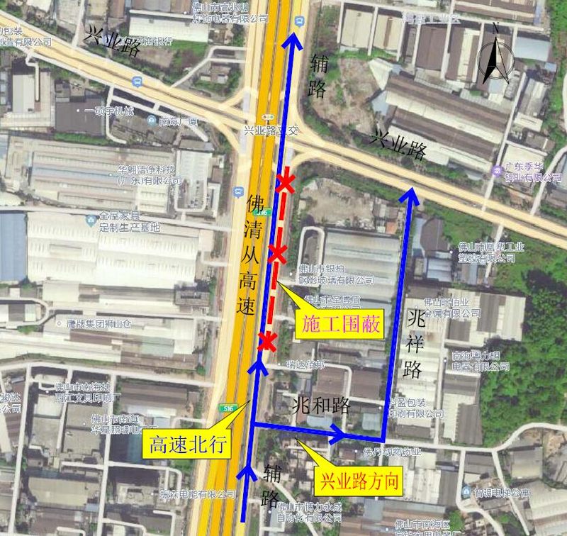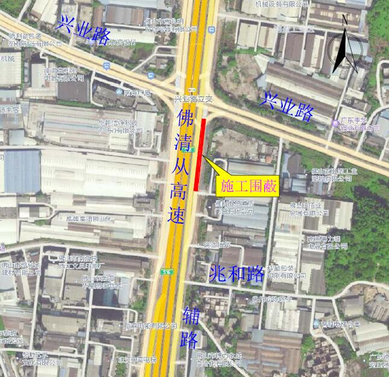 (3)施工点指引车辆通过兆和路、兆祥路绕行至兴业路。