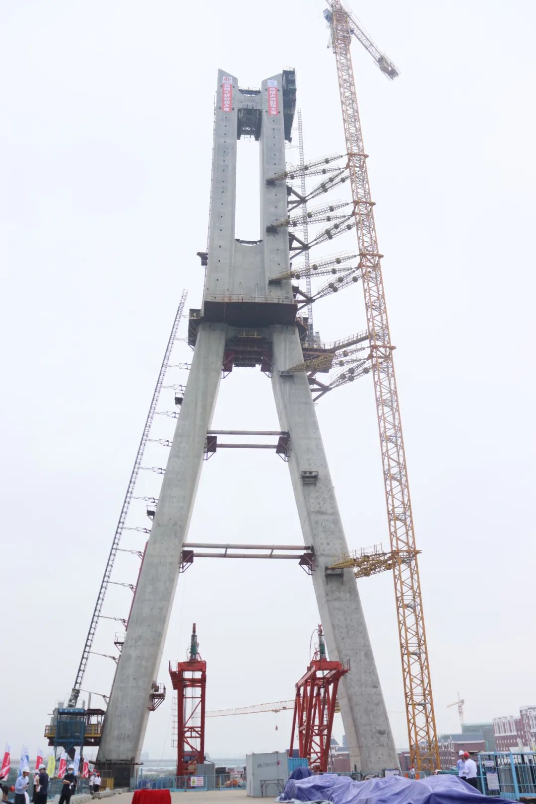 4月21日,南庄大道东延工程(凤翔大桥)主塔最后一节塔柱正式拆除混凝土模板,标志着高度达151米的塔柱主体结构完成施工。4月22日上午,南庄大道东延工程(凤翔大桥)举行主塔封顶庆典仪式。