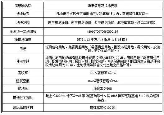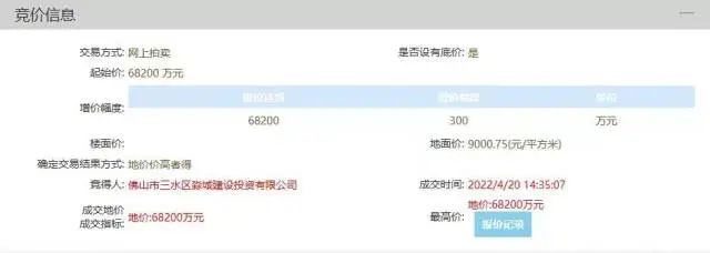 4月20日,佛山市三水区出让一宗商住用地,由三水区淼城建设投资有限公司以6.82亿元竞得。
