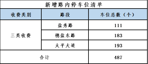 5月1日起,大沥镇新增停车收费路段范围包括:盐步片区盐秀路、穗盐东路、大沥片区太平大道以上路段均属于三类收费路段,车位总数为487个。