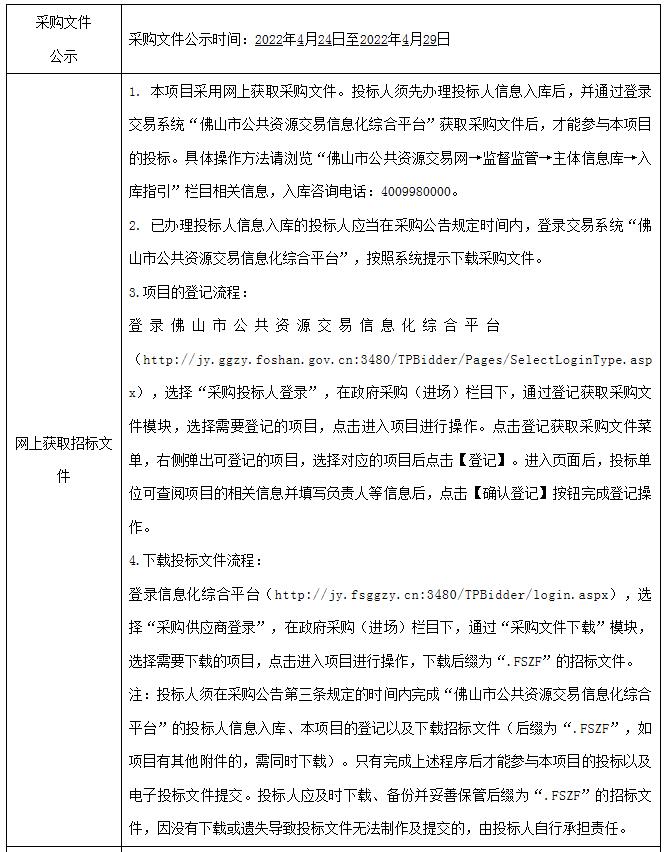 地点:佛山市公共资源交易信息化综合平台(http://ggzy.foshan.gov.cn/),具体详见第六点“其他补充事宜”