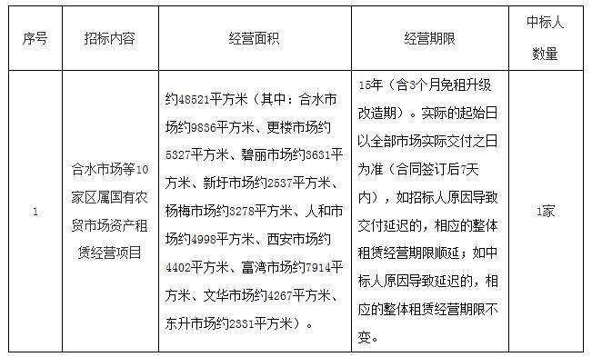 二、项目名称:合水市场等10家区属国有农贸市场资产租赁经营项目