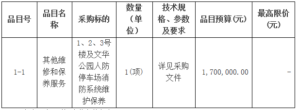 项目名称:1、2、3号楼及文华公园人防停车场消防系统维护保养(二次)