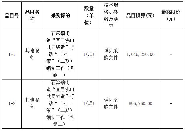 合同包1(石湾镇街道“宜居佛山 共同缔造”行动“一社一策”(二期)编制工作):