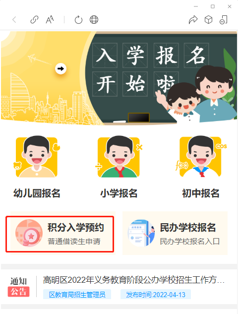 2.点击“积分入学预约”,即可进入预约界面